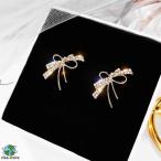 ピアス レディース ピアス スタッド シルバーニードル ピアス リボン ピアス ラインストーン ピアス パーティー デート 結婚式 リボンデザイン プレゼント