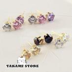 ピアス レディース 一粒 大粒 CZダイヤ 6色 5mm かわいい 両耳セット アクセサリー ポイント消化