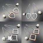 ピアス レディース ゆれる パール リング ハート 四角 菱形 ロング 2連 2色 揺れる パーティー アクセサリー ポイント消化