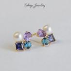 18K ピアス 淡水パール アメジスト ロンドンブルートパーズ アイオライト 18金 ゴールド k18 2月 6月 9月 11月 誕生石 ( 誕生日プレゼント 女性 レディース )