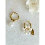 ピアス quaranciel: ミニ 淡水パール フラワーデザイン フープ ピアス レディース