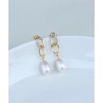 ピアス 淡水パール×オーバルピアス「K10」 レディース