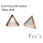 ピアス レディース アレルギー対応 ニッケルフリー K10 10金 イエローゴールド 天然 ホワイトシェル トライアングル スタッドピアス ペア 両耳用 白蝶貝