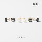 ピアス レディース K10 10金 イエローゴールド スタッドピアス 猫 ネコ ねこ 白猫 黒猫 白蝶貝 黒蝶貝 L&Co. エルアンドコー