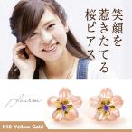 さくら 桜 ピアス レディース メンズ アメジスト K10 イエローゴールド ブラックシェル 送料 無料 白蝶貝 マザーオブパール デザイン 春 ピアス シンプル 男性