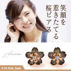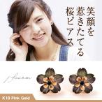 さくら 桜 ピアス レディース メンズ キュービックジルコニア K10 ピンクゴールド ブラックシェル 送料 無料 白蝶貝 マザーオブパール デザイン 春 ピアス シン
