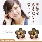 さくら 桜 ピアス レディース メンズ ブラック ダイヤモンド K10 イエローゴールド ブラックシェル 送料 無料 白蝶貝 マザーオブパール デザイン 春 ピアス シン