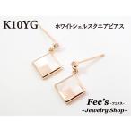 ピアス レディース アレルギー対応 ニッケルフリー K10YG 10金 イエローゴールド ホワイトシェル スクエアピアス フックピアス 天然石 白蝶貝