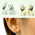 ピアス レディース アレルギー対応 ニッケルフリー K18 18金 ゴールド Pt900 プラチナ コンビカラークロスフープピアス ペア 両耳用 シンプル 30代 40代 50代