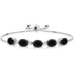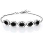 【並行輸入品】Gem Stone King 8.2カラット 天然 オニキス ブレスレット レディース シンセティック ホワイトサファイア シルバー92