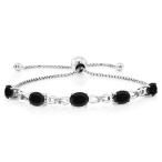 【並行輸入品】Gem Stone King 8.2カラット 天然 オニキス ブレスレット レディース シンセティック ホワイトサファイア シルバー92