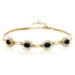 Gem Stone King 3.56カラット 天然 オニキス ブレスレット レディース シルバー925 18金 イエローゴールド 加工 8月 誕生石