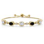 Gem Stone King 4.5カラット 天然 トパーズ ブレスレット レディース 天然 オニキス シルバー925 18金 イエローゴールド 加工
