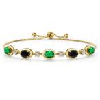 Gem Stone King 3.3カラット ナノエメラルド ブレスレット レディース 天然 オニキス シルバー925 18金 イエローゴールド 加工