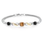 Gem Stone King 2.15カラット 天然 タイガーアイ ブレスレット レディース 天然 オニキス シルバー925 &イエローゴールド 誕生