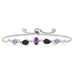 Gem Stone King 1.51カラット 天然 アメジスト ブレスレット レディース 天然 オニキス シルバー925 &10金 イエローゴールド