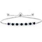 Gem Stone King 0.82カラット 天然 オニキス ブレスレット レディース ラボグロウンダイヤモンド シルバー925 8月 誕生石 誕生