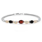 Gem Stone King 1.73カラット 天然 ガーネット ブレスレット レディース 天然 オニキス シルバー925 &イエローゴールド 1月