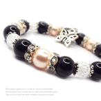 天然石 パワーストーン ブレスレット レディース アクセサリー オニキス ピンクシェルパール バタフライ チャーム