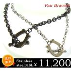 ペアステンレスブレスレット ブラック スチールシルバー 馬蹄 キュービックジルコニア 年度末 sale