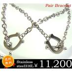 ペアステンレスブレスレット スチールシルバー 馬蹄 キュービックジルコニア 年度末 sale