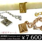1粒石チャーム付きイニシャルブレスレット レター スチールシルバー イエローゴールド ピンクゴールド ステンレス 刻印無料 オーダーメイド 年度末 sale