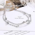 AIKS レディース ブレスレット ピンクゴールド ステンレス ジルコニア 腕輪 可愛い 一粒 ダイヤモンド 細いチェーン 2連ブレスレット