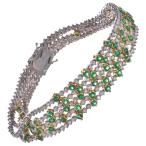 ブレスレット K18 18金 プラチナ エメラルド ダイヤモンド イエローゴールド 5連 テニスブレスレット レディース ユニセックス 18cm テニスチェーン 手造り 爆買