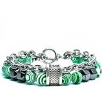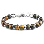 メンズブレスレット レディースブレスレット 8MMピーコックストーン ブラックブルーストーン チタンスチールチェーン(T-03)