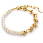 【並行輸入品】AMINKINA 14Kゴールドパール翡翠ブレスレット レディース 天然翡翠と淡水パールビーズチェーンブレスレット ファッションジュエリ