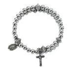 【並行輸入品】Diamond2Deal 925スターリングシルバー ビーズラップ ロザリオとクロスチャームネックレス レディース ブレスレット