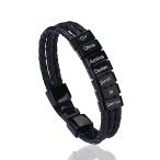 【並行輸入品】パーソナライズされたメンズブレイドブレスレット 1~7個のビーズ名 カスタムレザー IDブレスレット メンズ レディース 父親 父