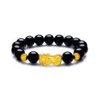【並行輸入品】[ZHOU LIU FU] 24K ソリッドゴールドブレスレット レディース 24金ジュエリー 瑪瑙ビーズ貔貅ブレスレット 男性