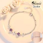 送料無料 ブレスレット レディース アクセサリー ファッション小物 女性 ラインストーン ハート キラキラ 四つ葉 クローバー 花 フラワー 華奢 細め 高見え 高級感 華やか 大人 パープル 紫 ホワイト 白 婦人 カジュアル パーティー 結婚式 2次会 おしゃれ お出かけ ギフト