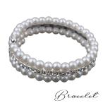 ブレスレット レディース 女性用 アクセサリー バングル フェイクパール ラインストーン 重ね付け風 レイヤード風 エレガント 上品 おしゃれ