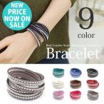 ブレスレット メンズ レディース ユニセックス 本革 多連 スタッズ&ラインストーンデザイン / ポイント消化[9カラー]《 送料無料 》