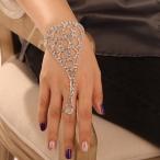 【並行輸入品】YERTTER シルバーラインストーンハンドチェーンフィンガーリングブレスレット レディース ハーネス ウェディング 花嫁 クリスタルブ