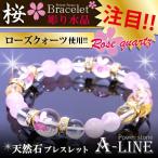 パワーストーン ブレスレット ローズクォーツリボントップ♪桜彫り水晶10mm&ローズクォーツオーラ8mm PW-3075