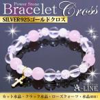 パワーストーン ブレスレット レディース クリスマスプレゼント シルバー925製ゴールドクロス&ローズクォーツ PW-2923