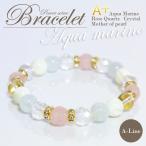 パワーストーン ブレスレット レディース 64面カットローズクォーツ&アクアマリン マザーオブパール8mm PW-2948