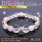 パワーストーン ブレスレット クリスタルリボントップ&64面カット水晶&ローズクォーツオーラ8mm PW-3095a
