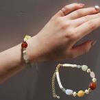 ストーンブレスレット カーネリアン ローズクォーツ シトリン 淡水パール シェル 約16.5cm SUS316 サージカルステンレス 750284