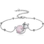 【並行輸入品】VADMANS キャットブレスレットジュエリー レディース ローズクォーツブレスレット 925スターリングシルバー キャットチャーム 女