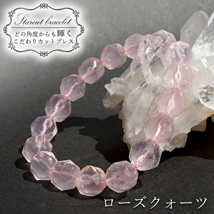 【楽天スーパーSALE 30%OFF】 ローズクォーツ 12mm スターカットブレスレット ブラジル産 Rose Quartz 天然石 パワーストーン カラーストーン Zm45w