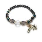 ブレスレット 「 NOLITA / ノリータ 」スクエアタンブルカット スモーキークォーツ カット水晶 グリーンタイガーアイ チャーム付き 天然石 ブ
