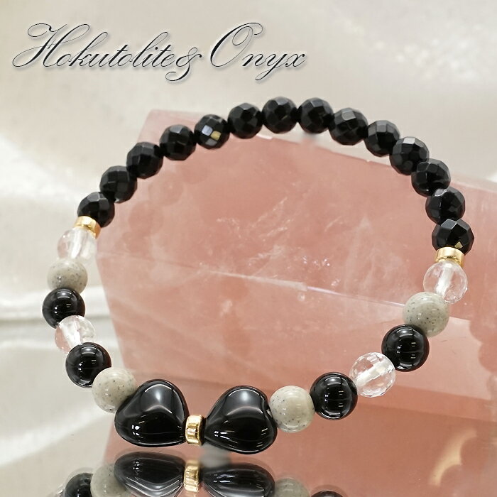 【楽天スーパーSALE 50%OFF】 北投石 デザインブレスレット オニキス 水晶 ハート チャーム ブレス オリジナルブレス 浄化 天然石 パワーストーン t4UgS