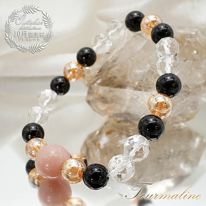 【楽天スーパーSALE 30%OFF】 ブラックトルマリンデザインブレスレット【 10月誕生石 】 水晶カット ピンクオパール ゴールデンオーラ トルマリン インクォーツ ブレス オリジナル 天然石 パワーストーン カラーストーン Zm45w
