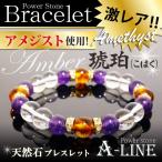 パワーストーン ブレスレット アンバー(琥珀)&アメジスト&水晶8mm PW-3031 爆買