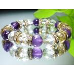 決算セール 天然石 数珠ブレスレット 紫水晶アメジスト 64面カット水晶10ミリ金ロンデル パワーストーン 高品質 お守り 運気アップ