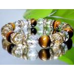 決算セール 天然石 数珠ブレスレット 虎目石タイガーアイ 64面カット水晶10ミリ金ロンデル パワーストーン 高品質 お守り 心機一転 / 京海堂
